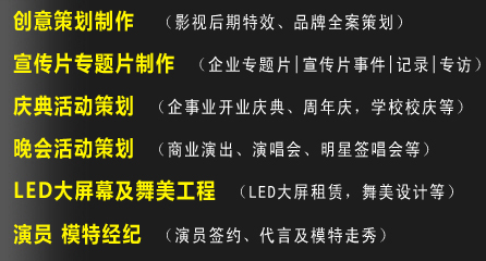 多年的行業(yè)淬練、豐富的制作經(jīng)驗(yàn)使我們建立起一支專(zhuān)業(yè)、高效、富有創(chuàng)造力的團(tuán)隊(duì)——國(guó)家級(jí)的導(dǎo)演,為全片制作指點(diǎn)乾坤;睿智的策劃撰稿,妙筆點(diǎn)亮全片靈魂;成熟的執(zhí)行導(dǎo)演,拍攝中統(tǒng)籌畫(huà)面效果;老到的攝影師,嫻熟地記錄各式場(chǎng)景;還有新銳的后期編導(dǎo),用靈感為作品增色;充滿(mǎn)熱情的剪輯師、動(dòng)畫(huà)包裝師,讓畫(huà)面效果更為精彩繽紛;才華橫溢的音樂(lè)制作人,帶來(lái)渲染氣勢(shì)的合片旋律……不同的工種通力合作,眾志成城,為一個(gè)完美影視作品的誕生齊心協(xié)力。